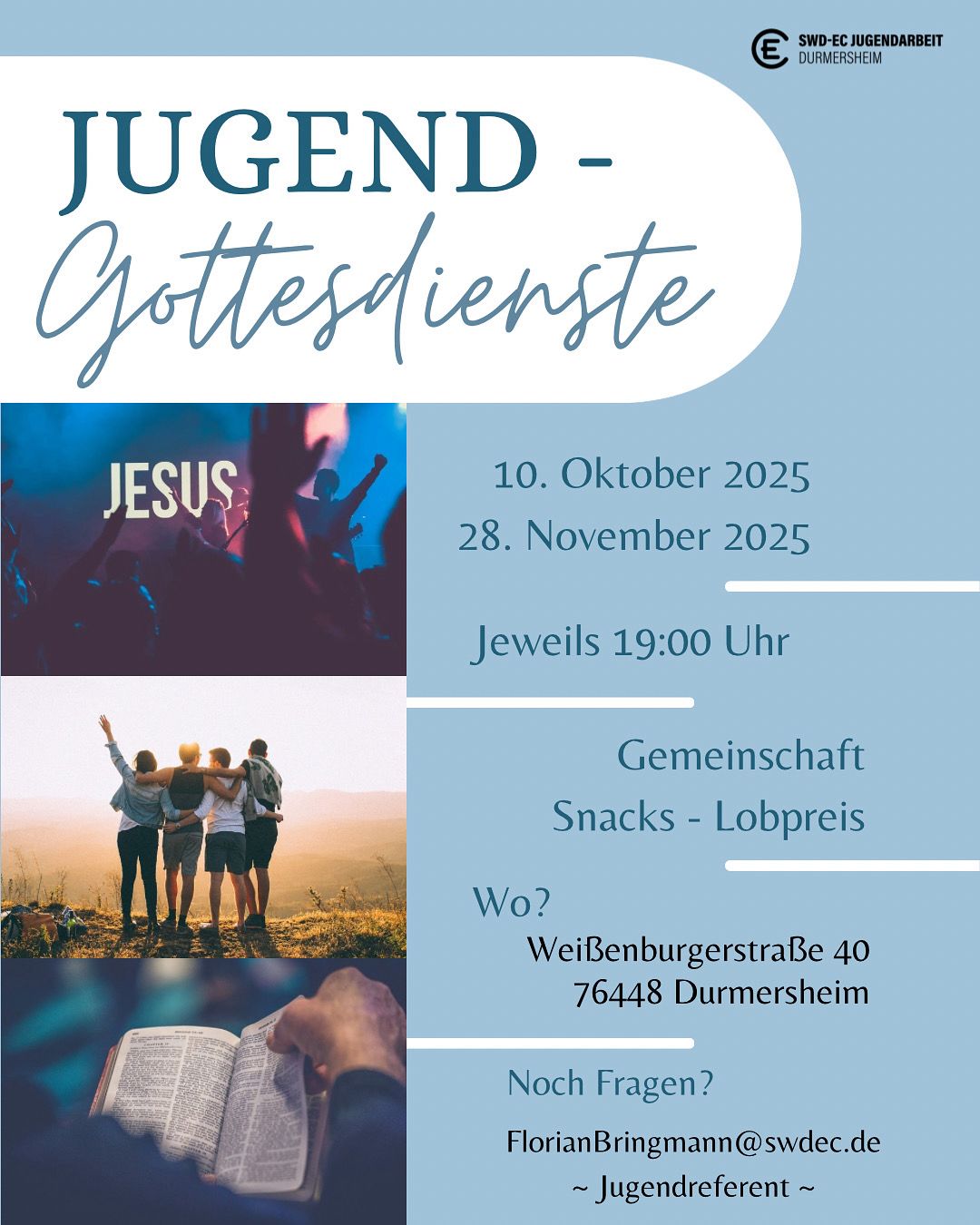 Du hast Lust auf Gemeinschaft, gute Musik und echte Begegnungen mit Gott? Dann bist du bei unseren Jugendgottesdiensten genau richtig!